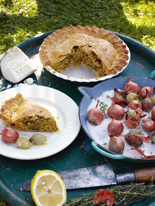 This amazing vegetarian pie with rich, crumbly pastry and served with sweet salt-baked shallots is on a whole other level.